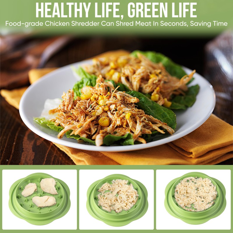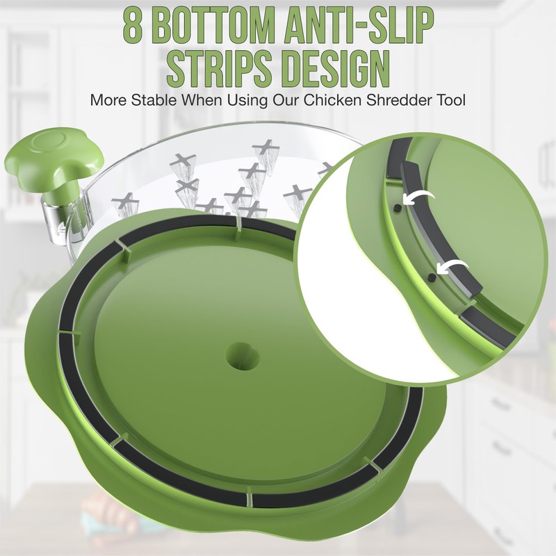 - UPGRADED CHICKEN SHREDDER: Compared to the old chicken shredder, the inner shred structure has been improved with strong spikes and a unique flower design for better shredding performance. Additionally, eight anti-slip mats have been added to enhance stability, preventing the shredder from sliding on kitchen surfaces. The design features a simple, glossy, circular transparent lid, adding a sleek and modern touch.
