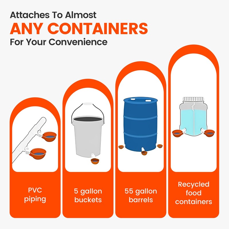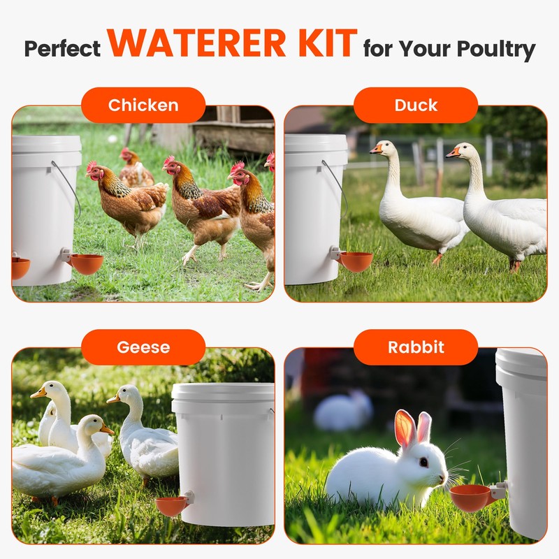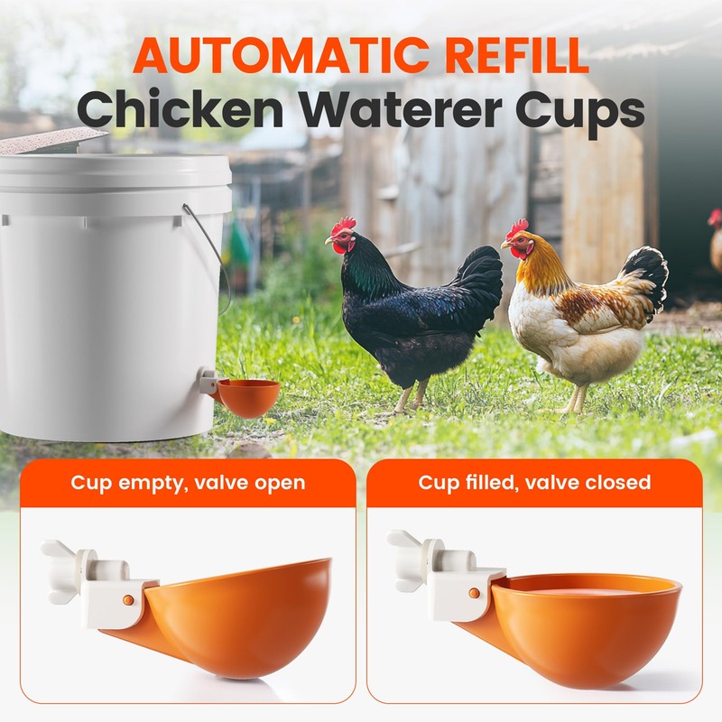 Eggluuz Chicken Waterer Cups, 6 Pack Automatic Chickens Water Cups for Poultry Orange