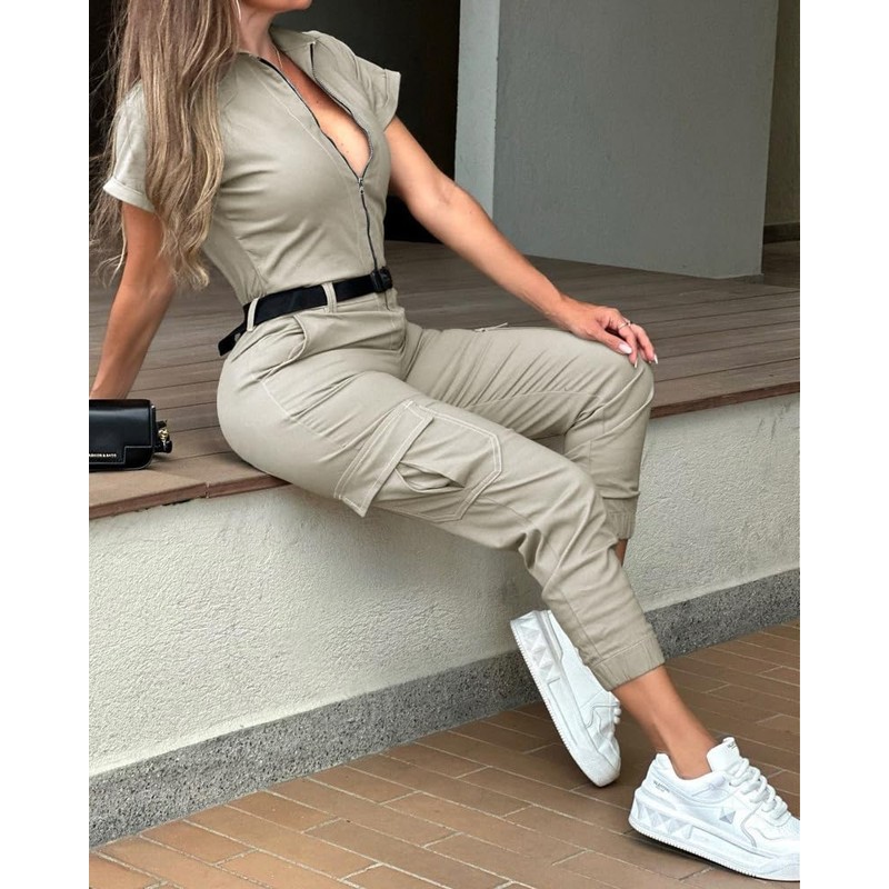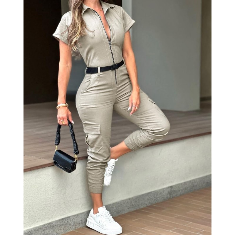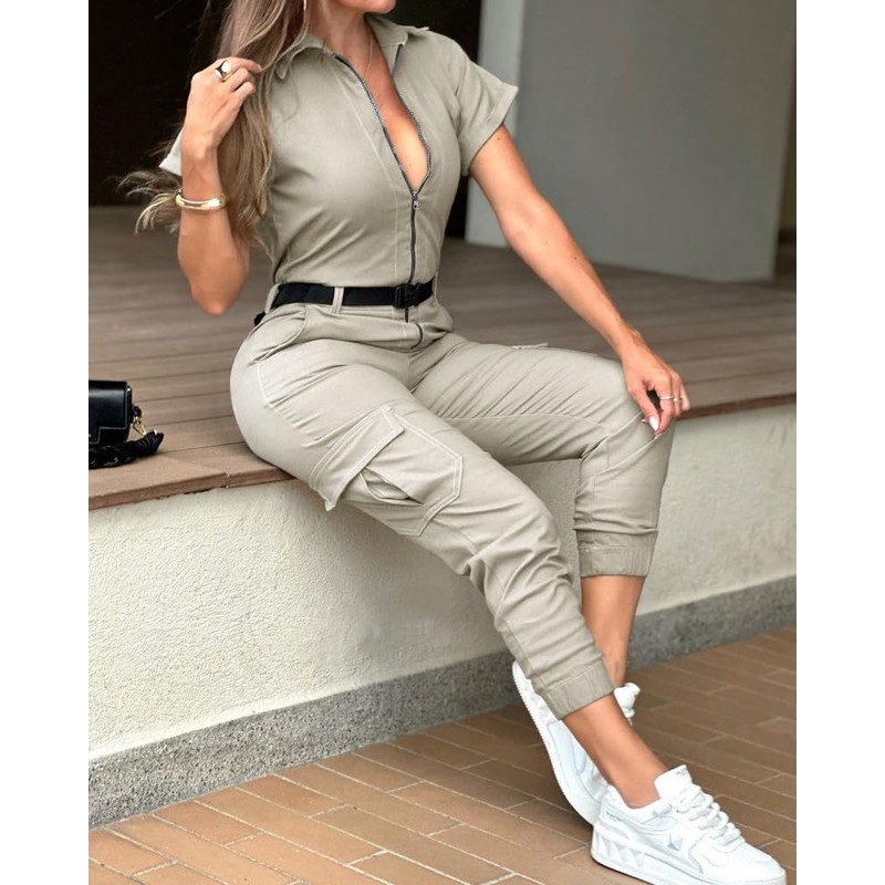 - Chic and Casual Design: This short sleeve jumpsuit features a stylish turn-down collar and zip-up romper design, perfect for both casual outings and work jumpsuits for women