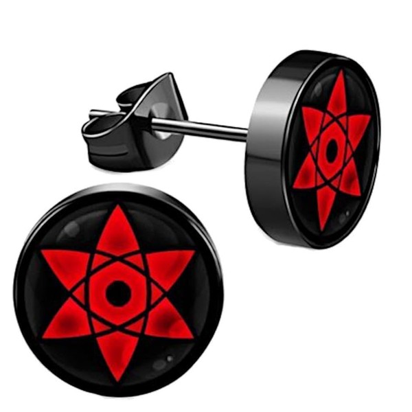 CHICNET Stainless Steel Stud Earrings Black 8 mm Red Sharingan Eye Anime Manga Ear Jewellery Surgical Steel Unisex Men Women Men