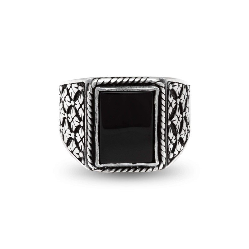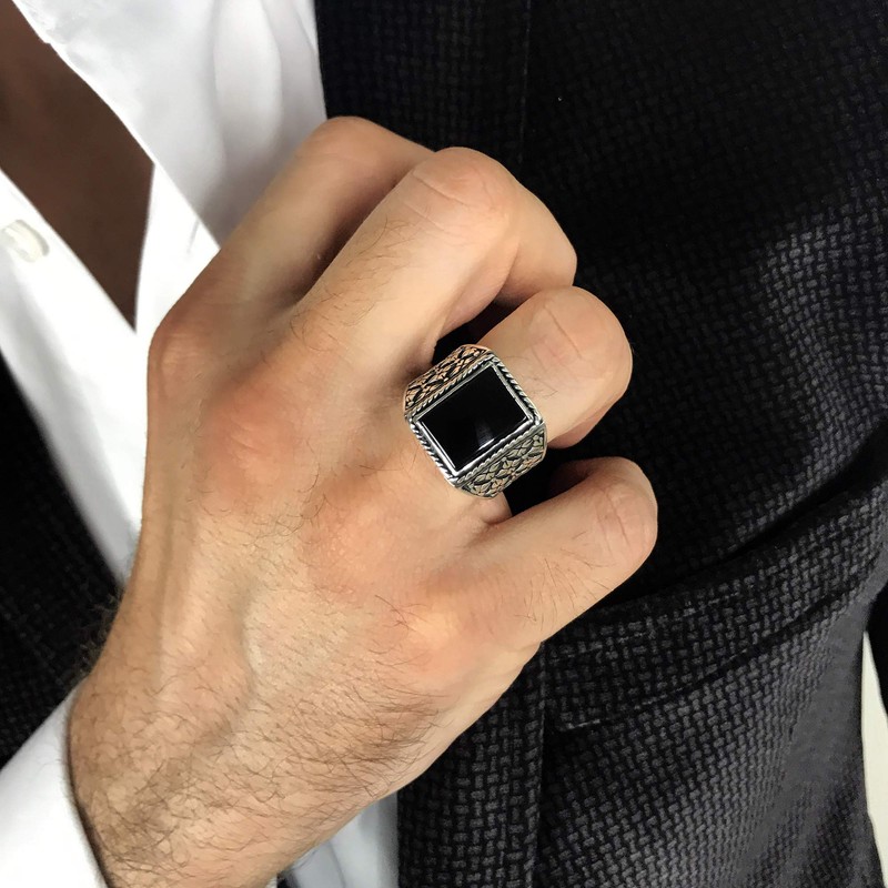 Chicotta Men's Handmade Classics Style Sterling Silver Ring with Rectangle Onyx Gemstone (11)