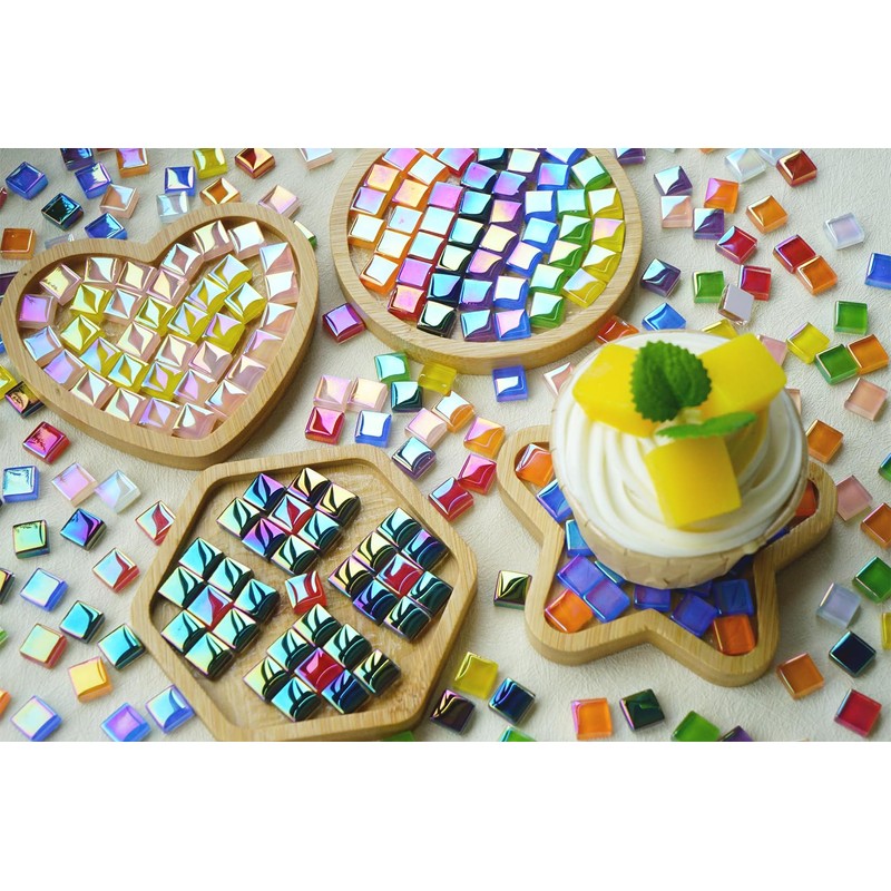 These versatile tiles are excellent for crafting mosaic coasters, decorative glass lamps, and unique personalized gifts.