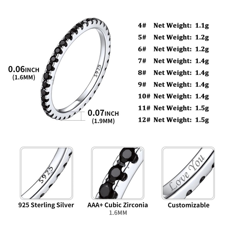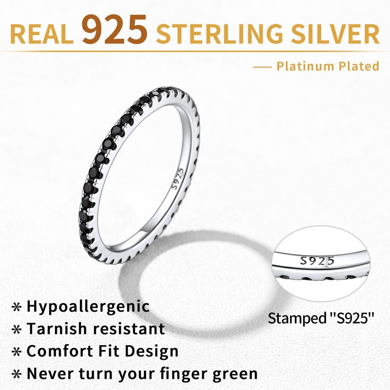 - SAFE TO WEAR - Hypoallergenic 925 sterling silver, allergy free, nickel-free, passed strict skin test grant. Be assured that these silver rings are very safe to wear and wouldn’t trigger any skin allergies. You can comfortable wear these dainty cz band rings all day long.
