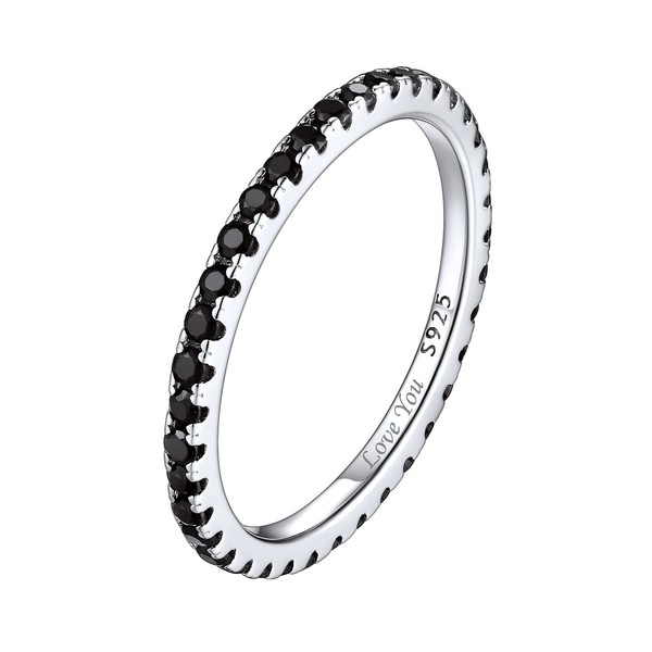 ChicSilver 2MM Thin Black Cubic Zirconia Eternity Ring 925 Sterling Silver Black CZ Simulated Diamond Stackable Engagement Wedding Band Ring for Women Size 4
