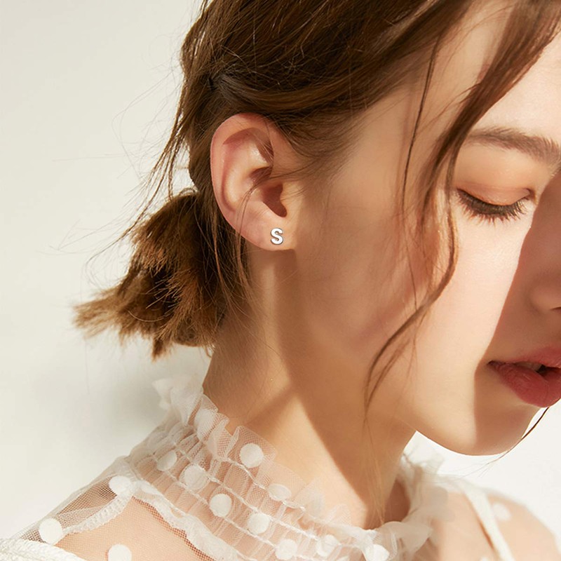 - 🍓925 Sterling silver letter earring, Initial studs, This initial stud earring is perfect to wear everyday, every occasion. Pick any letter of the alphabet for your initial stud earring. Or select several quantities and spell out your favorite word or phrase.The perfect gift for your beloved ones.