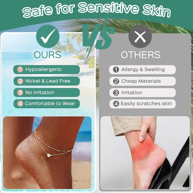 - High-quality Material: Crafted from hypoallergenic 925 sterling silver, this womens ankle bracelets is bright and non-tarnish. Lead-free and nickel-free, safe for sensitive skin. These anklets for women jewelry feature a delicate letter charm that elevate your summer look.