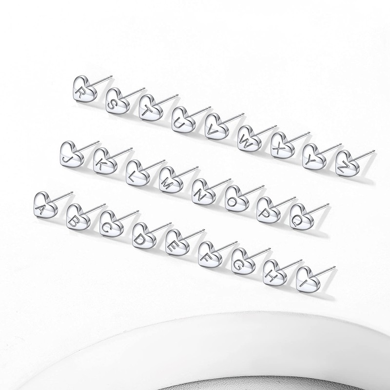 - 925 Sterling silver heart stud earrings,simple initial and heart mixed design, never out of fashion for classic one, perfect for everyday wear.