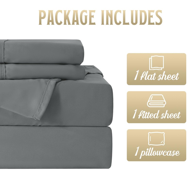 - Product Includes: 1 x flat sheet (66"x96"), 1 x fitted sheet (39"x75"), 1 pillowcases (20"x30")