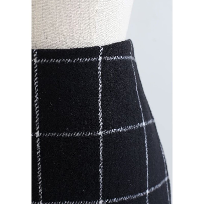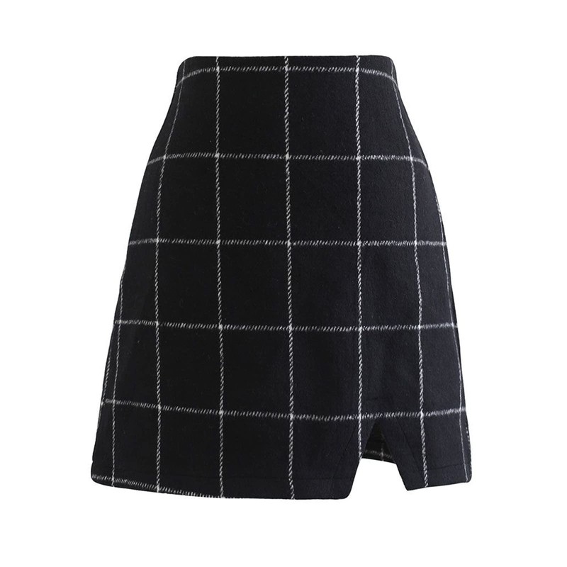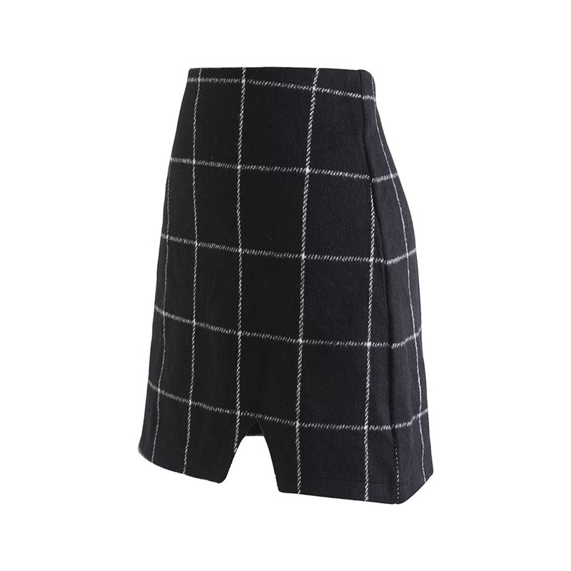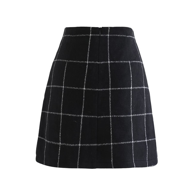 CHICWISH Women's Black Grid Wool-Blend Mini Bud Skirt