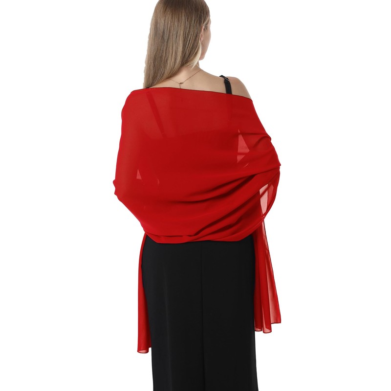 Chiffon Shawls and Wraps for Evening Dresses Women Elegant Soft Scarf Bridal Scarve Wedding Stole(Red(chiffon), One Size)