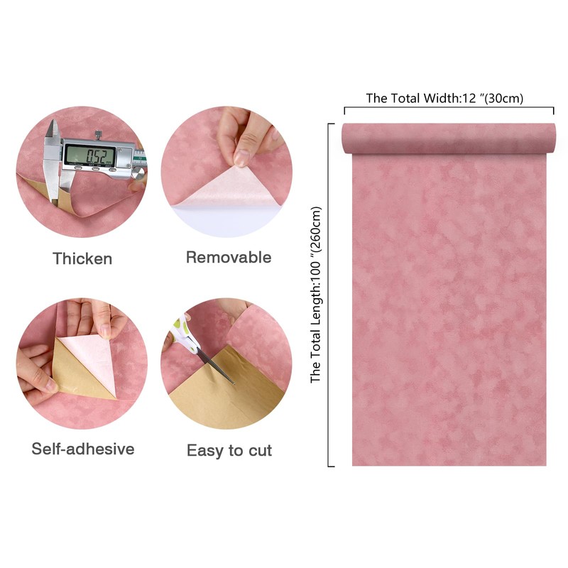 - [Size & High Quality] Our self-adhesive velvet flocking liner is thicker and more luxurious than regular wallpaper, providing a soft, luxurious touch. The velvet fabric contact paper measures 12“ x 100” and comes in an elegant peach pink color with a seamless finish. It is moisture-resistant, durable and has excellent rub resistance