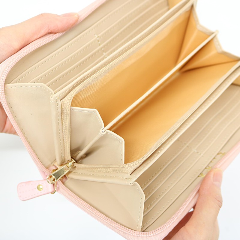 - A cute long wallet with embossing and patches, which are soothing by trio of the best pajamas