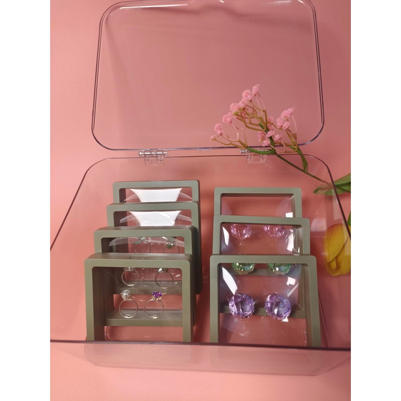 - PREMIUM DESIGN: Clear acrylic jewelry display case with olive green frames featuring 16 individual compartments and hinged lid for easy access