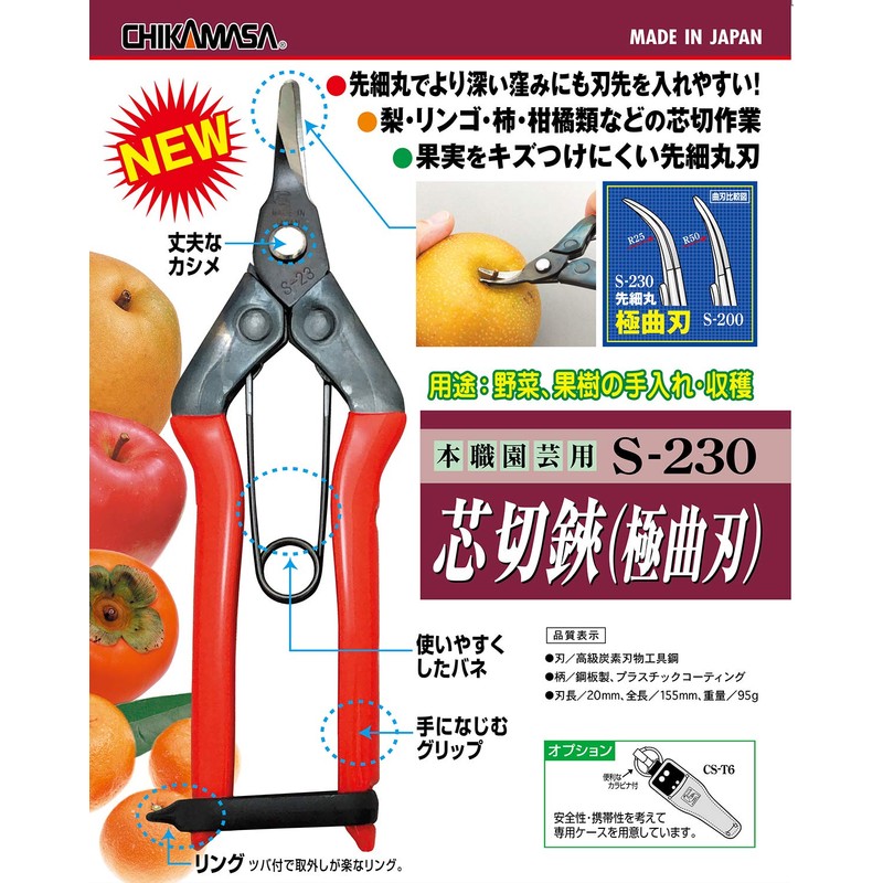 Chikamasa S-230 Core Cutting Shears, Ultra Curved Blade, 6.1 inches (155 mm)