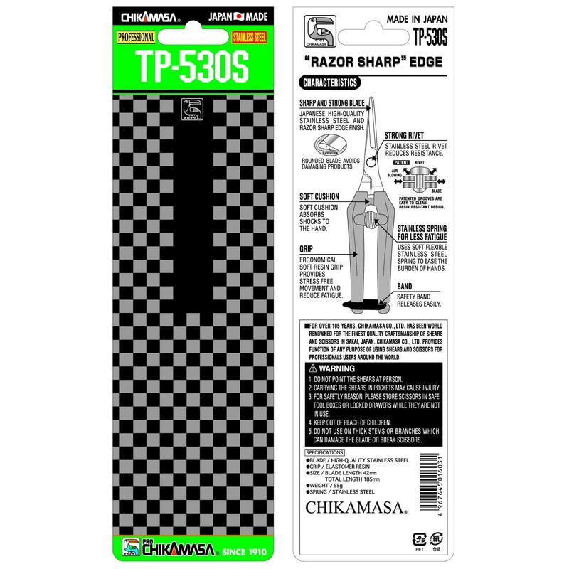 CHIKAMASA TP-530S Professional gardening shears/scissors for harvesting vegetables, fruit, trimming plants and excellent for small stem-thinning inside closed spaces.