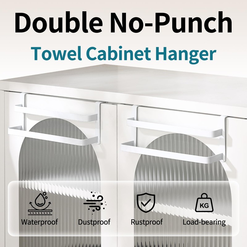 - 2-Pack for Extra Convenience:The 2-pack towel holder set gives you the flexibility to use them in multiple areas. Use one in your kitchen for dish towels and the other in your bathroom for hand towels. This versatile over-cabinet towel holder set fits perfectly in any space, making it an ideal kitchen and bathroom organizer.