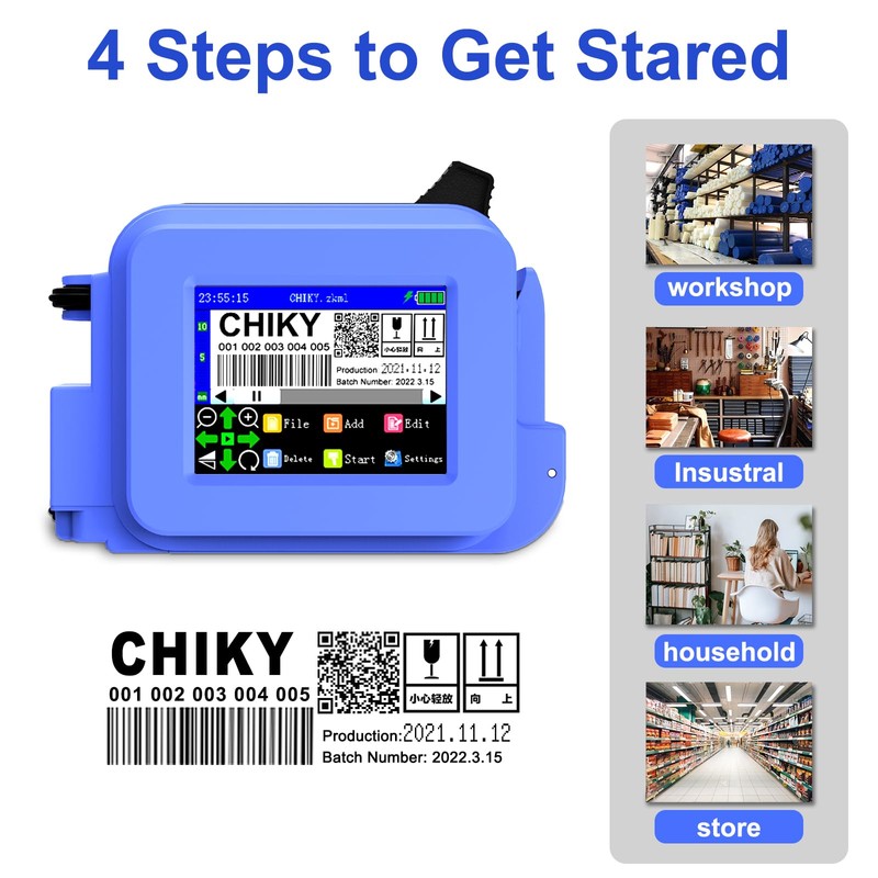 4.This mini handheld inkjet printer can print text, numbers, barcodes, QR codes, dates, times, serial numbers, lists, etc. on any surface. It can be used in small businesses, workshops, industries, handmade, time printing, and other areas.