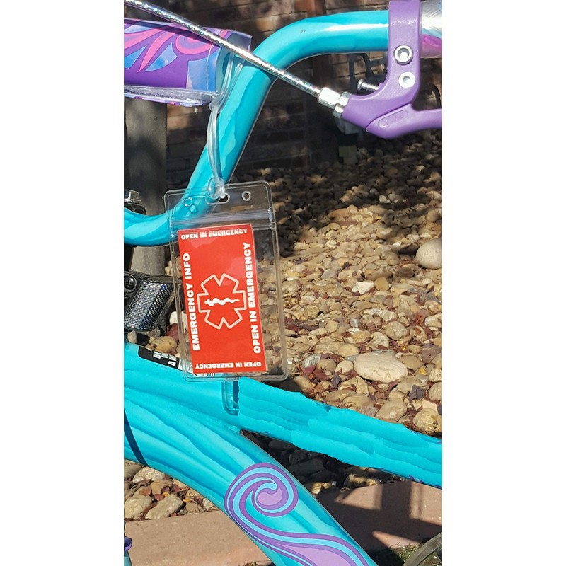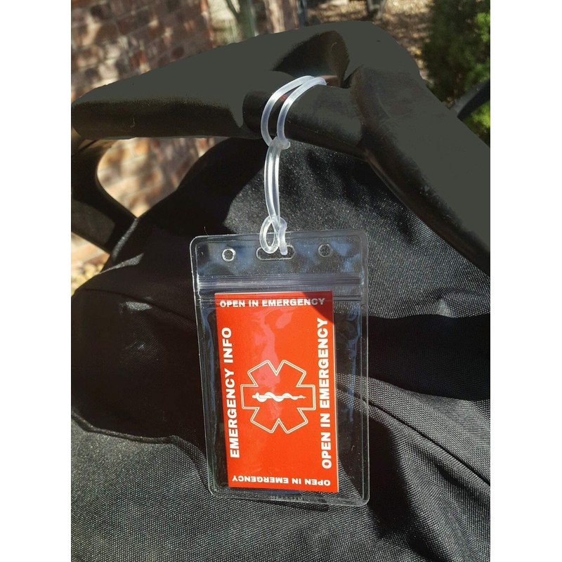 This tag has a loop that can be attached to most anything. Attach this child in case of an emergency card on strollers, car seats, diaper bags, purses, backpacks even loop it on their pants loop if they are on a school field trip, the card will speak for your child in the event of an emergency.