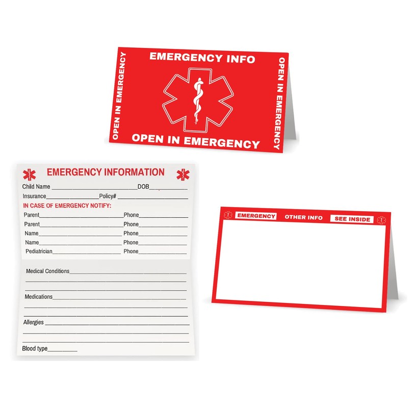 If you have a medical emergency or are in an accident and cannot speak for you or your child, this emergency alert card will speak for you. The cards are bright red and clearly marked with a medical symbol that first responders will recognize as important.