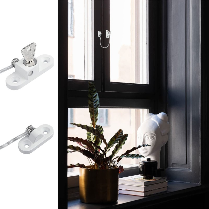Child Window Safety Locks for UPVC/Wooden Windows 2Pcs Lockable Window Safety Restrictors upvc Window Locking Mechanism for Protection,Anti Theft-20cm Cable Length to 100mm Opening(White)