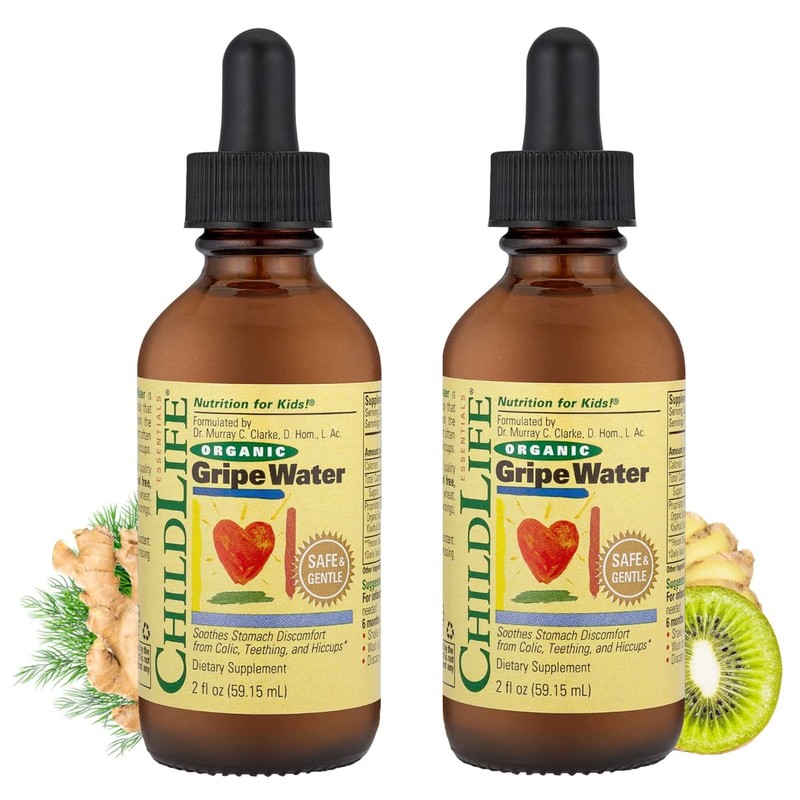 CHILDLIFE ESSENTIALS Organic Gripe Water - Soothes Occasional Stomach Discomfort Associated with Colic, Teething, & Hiccups in Infants & Children, Allergen Free, Non-GMO - 2 Fl Oz Bottle (Pack of 2)