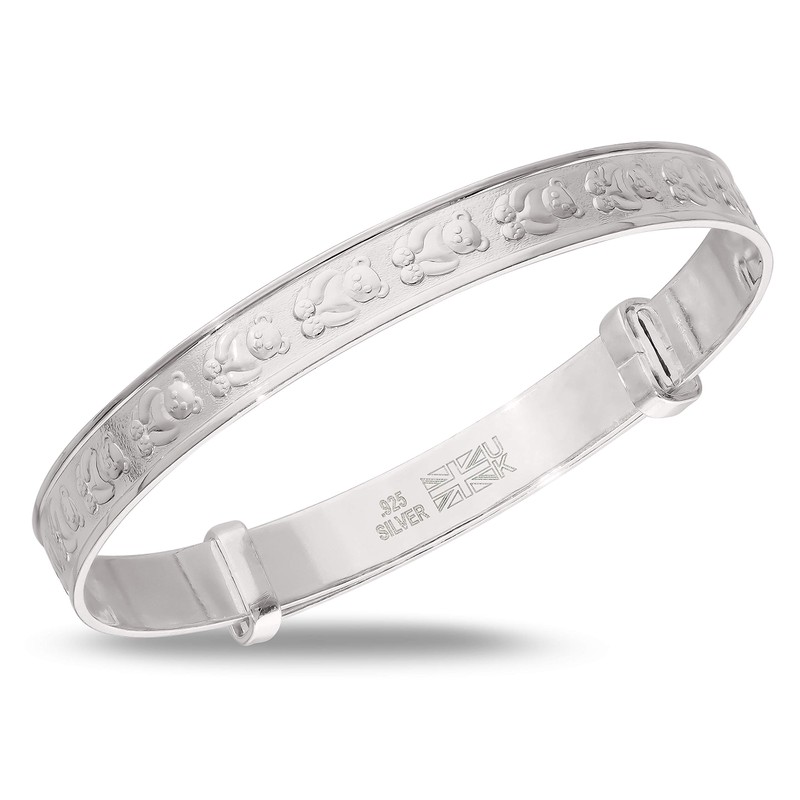 Children's 925 Sterling Silver Teddy Bear Bangle, teddy bear pattern bracelet, Baby Bangle