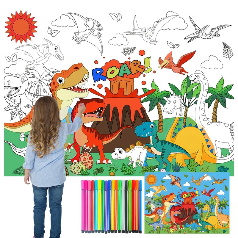- Packing list: you will receive 1 dinosaur painting poster for children and 18 different coloured watercolour pencils. This giant colouring poster gives eager painters plenty of space to add colour to the fantasy world.