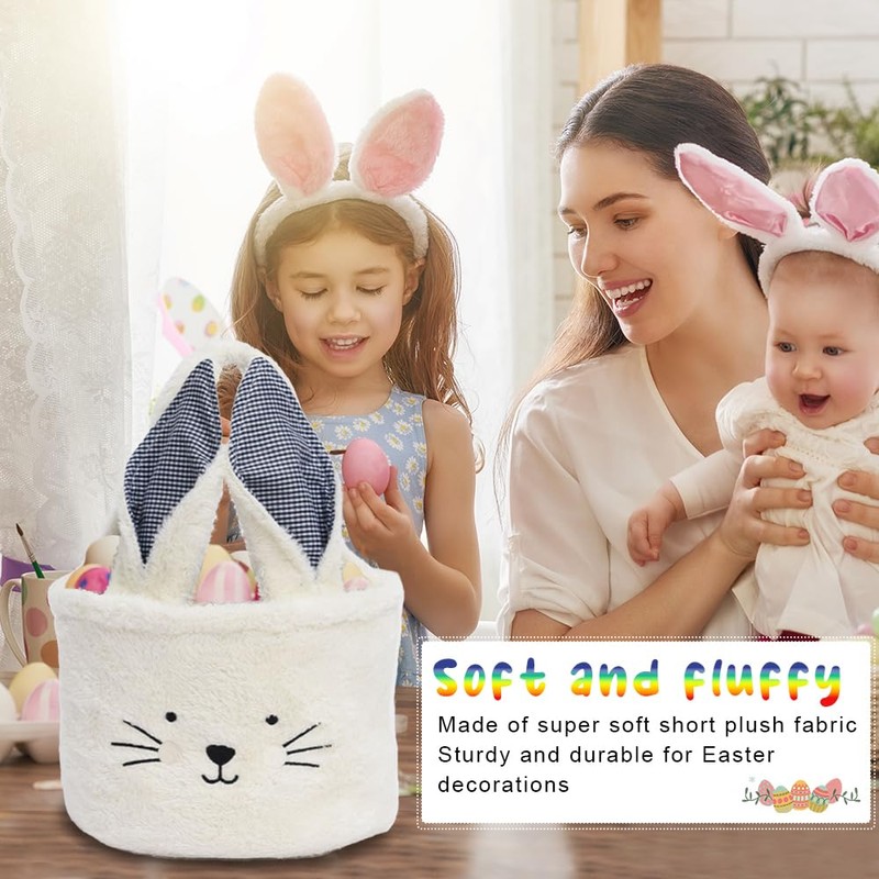 EASTER PLUSH BUNNY BUNNY BASKET This basket features Easter bunny ear design, which reflects the Easter theme and fits comfortably in your hand to put you in a good mood.