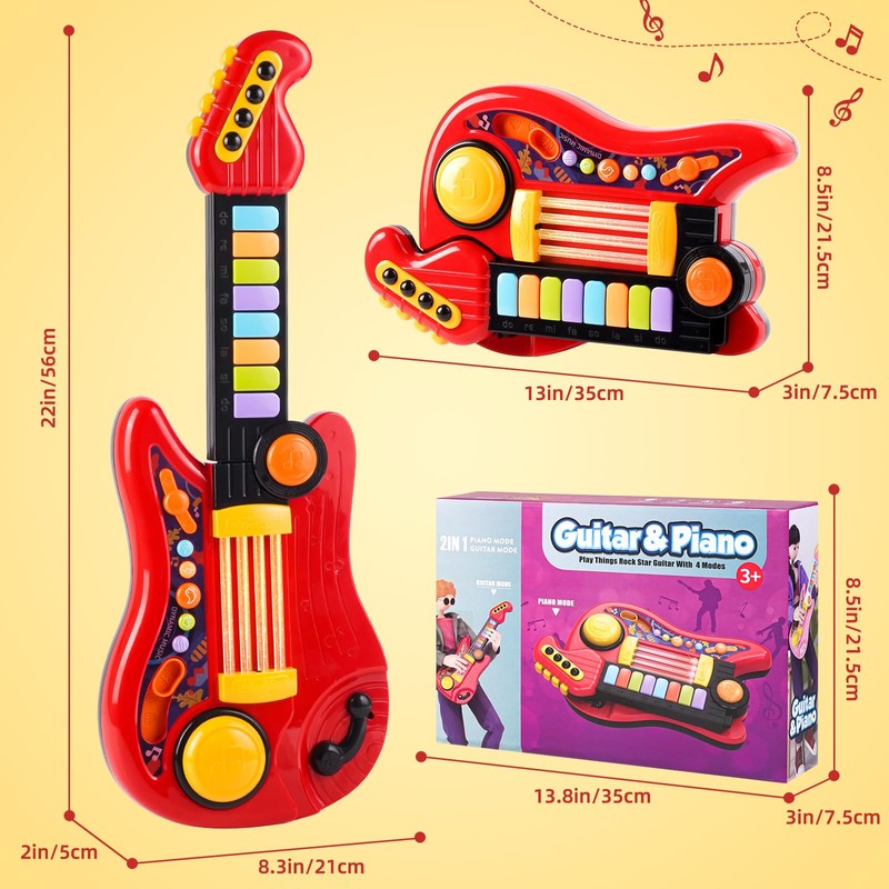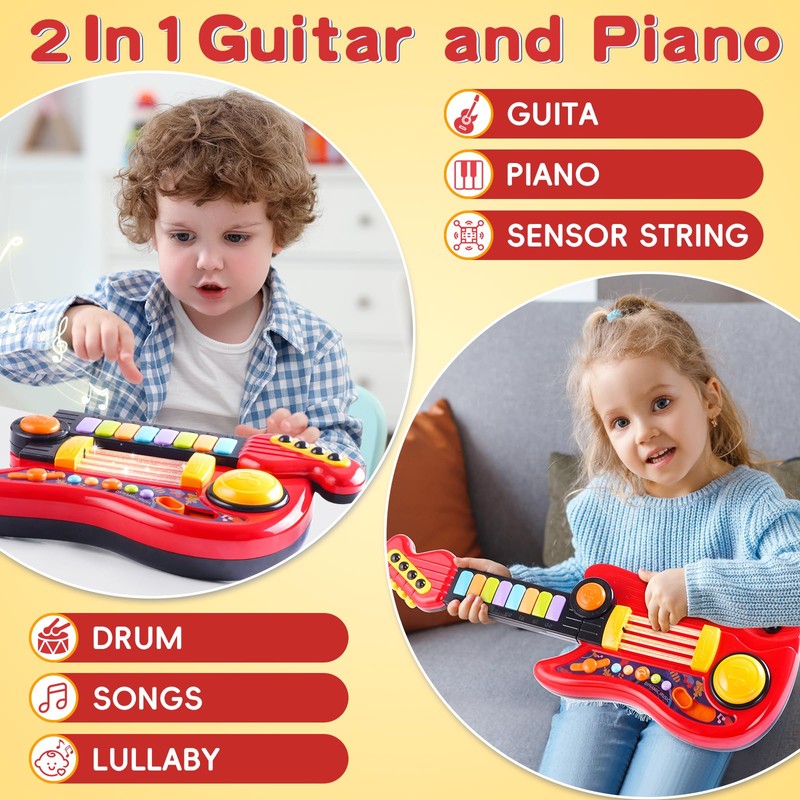 Kids Guitar-Piano 2-in-1 Musical Instrument, Toddler Guitar for 3-5 Year Old Boys Girls, Adjustable Educational Toy, for Birthdays.