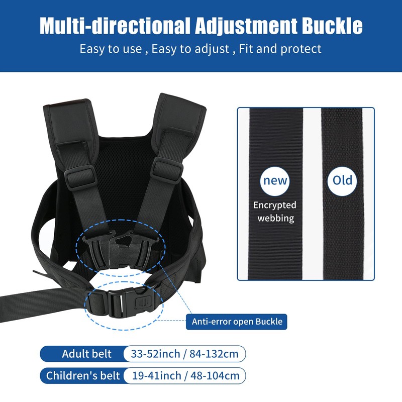 - Wider and thicker design: the wider and thicker straps and the enlarged buckle with a holding force of more than 12,000 Newtons are safer and significantly improve your child's comfort and experience. The buckle requires force to close, so the child cannot accidentally open it when naughty.