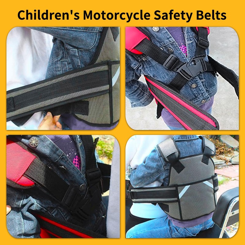 - Large use: children's motorcycle seat belt a versatile solution for parents who want to ensure the safety of your child during various outdoor activities. Suitable for children aged 1-12 years, can be used for motorcycles, bicycles, electric cars, electric scooters and much more.