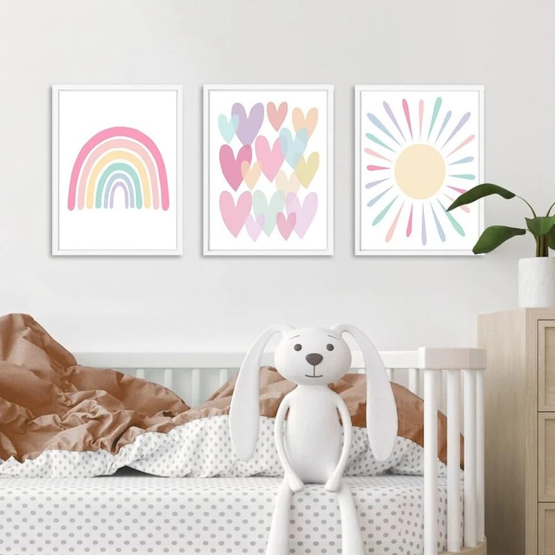 - Wall decoration children's room: whether as a decorative children's room for girls or as a decorative children's room for boys, the picture set with the rainbow, hearts fits in any child's room.