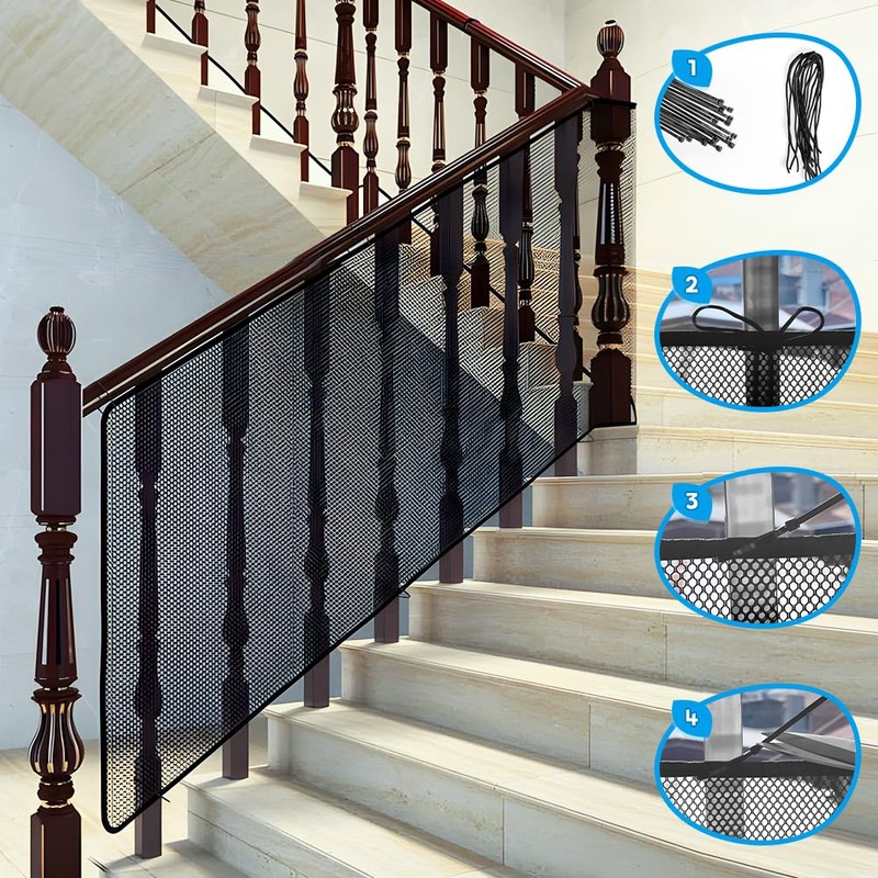 - 😀HIGH QUALITY: The safety net for children's stairs covers gaps indoors to prevent children from falling and other safety hazards. It is suitable for stairs, railings, cots, hallways, fences and balconies. If you have any questions about the product, please contact us directly. We will give you a satisfactory answer within 24 hours.