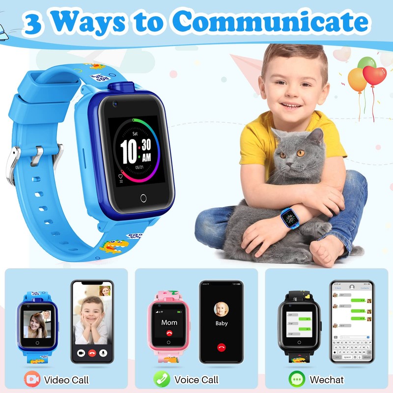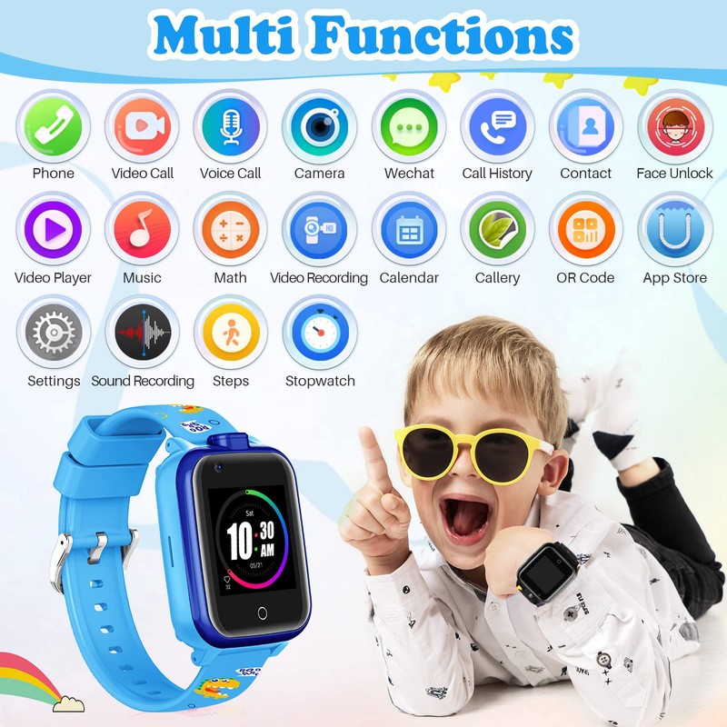 - Two-way call with GPS & SOS: The children's smart watch is integrated with 3 types of communication: 1. Call 2. Video call 3. Group Chat 4G smart watch for children also with GPS real-time position. Parents can check location history throughout the day and know where their children are at any time. The SOS function can help your children. Press and hold the SOS button for 3 seconds, and the watch will automatically dial the preset emergency number until it is answered.