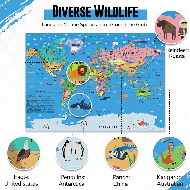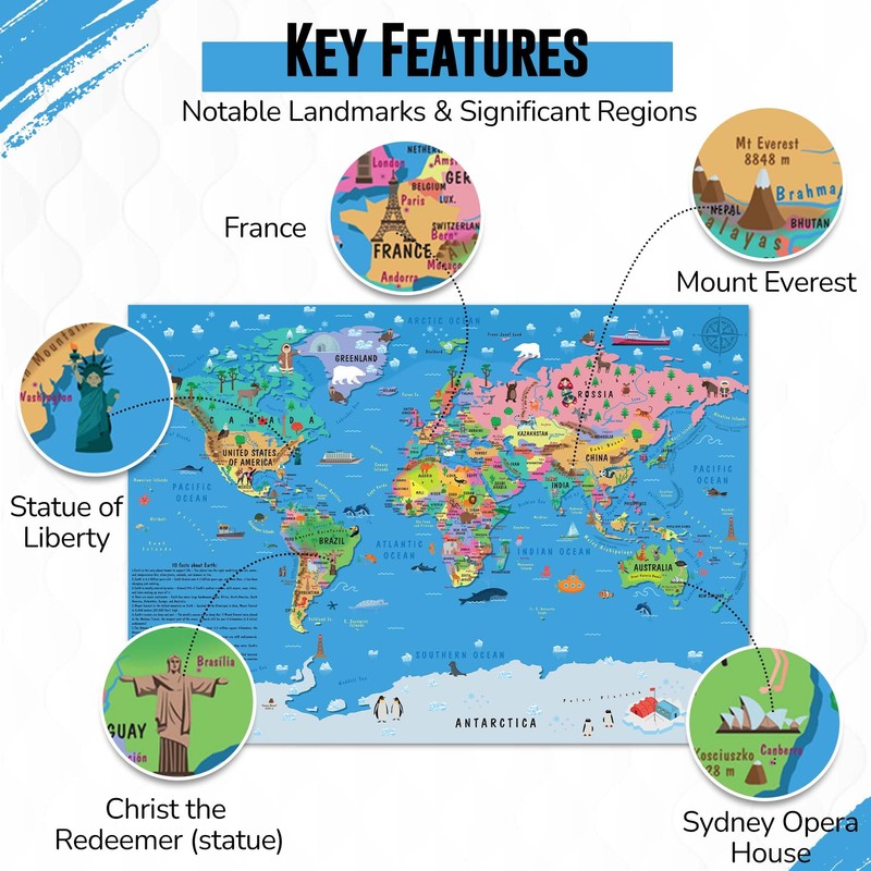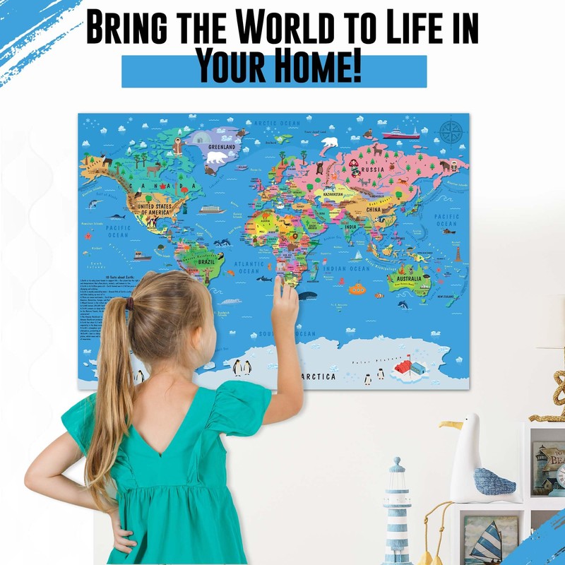 - Perfect Gift for Kids – An ideal gift for curious minds, this children's map of the world with pictures is great for birthdays, classrooms, or home learning.