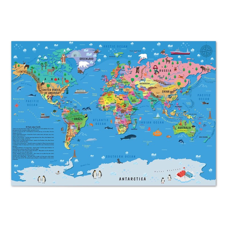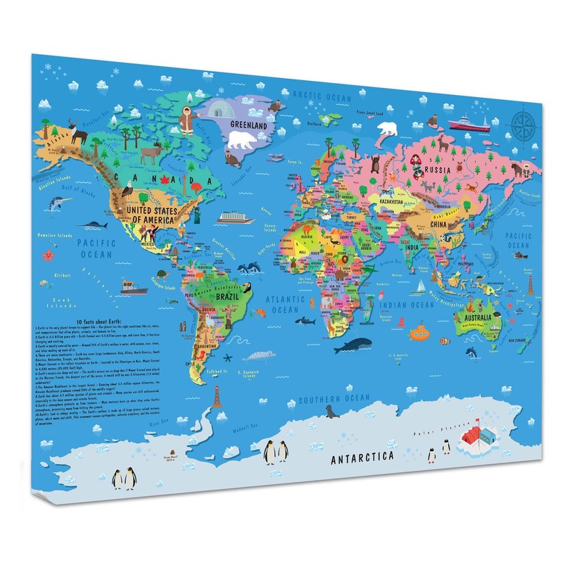 - Educational & Fun Design – This children's world map poster features a vibrant map with illustrated countries, famous landmarks and animals to help kids learn about the world in an engaging way.