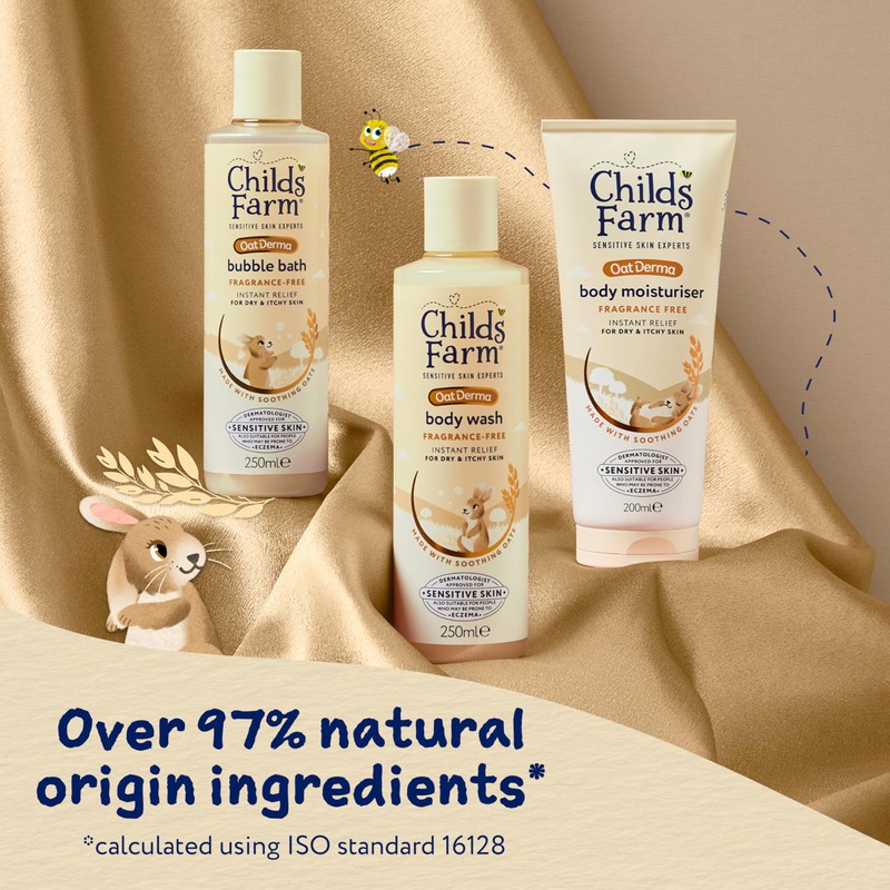- Childs Farm's OatDerma 3 step regime has been created specifically for dry and itchy skin, and packed with the goodness of oats to leave even the most sensitive skin feeling soothed and hydrated