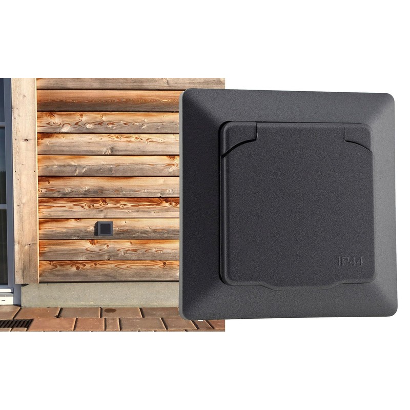 - Ideal fr Balkon, Terrasse, Aussen-Steckdose fr Haus und Wohnung. Farbe: Dunkel Grau / Anthrazit, Lieferung mit 1-fach Rahmen. Mit Gummischutz nicht kombinierbar in Mehrfach Rahmen