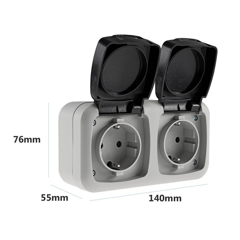 - Dimensions: W x H x D 140 x 76 x 55 mm, delivery 3 x surface-mounted sockets