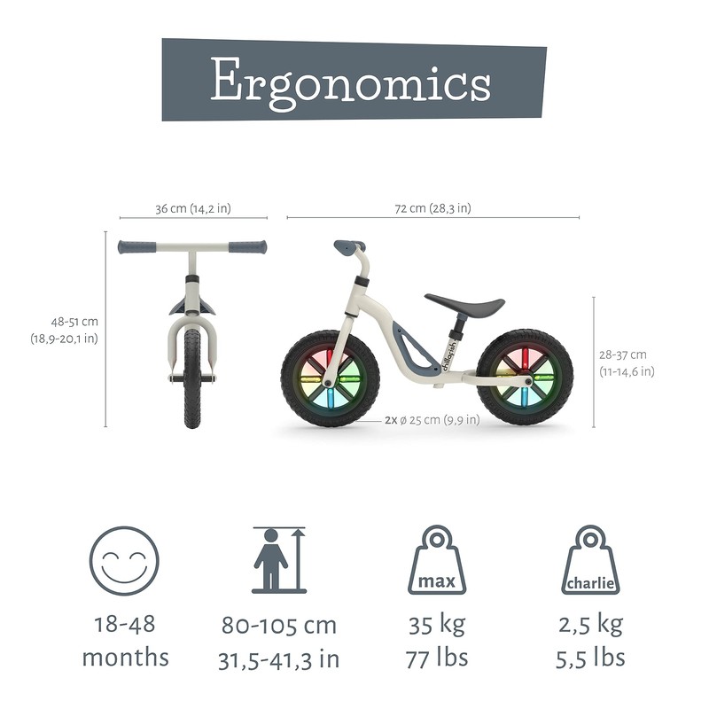 - MY FIRST BALANCE BIKE (THAT GLOWS!) - The best lightweight balance bike for kids of 18 to 48 months. With Charlie, your son or daughter will learn to ride a real bicycle with ease! Wheels light up when riding for extra fun and visibility (no batteries needed).