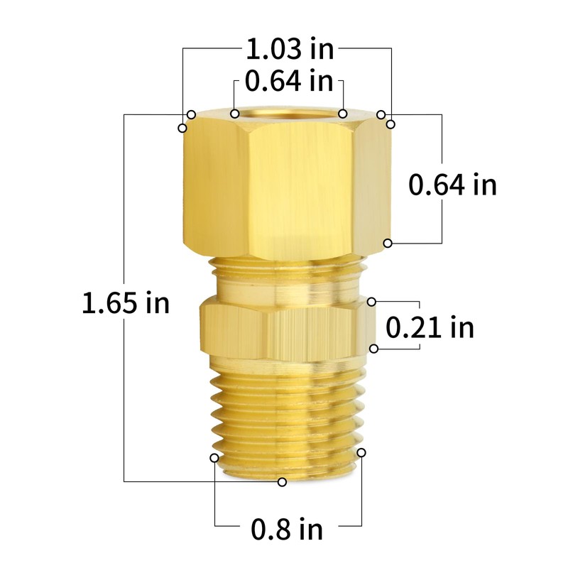 • SIZE - 5/8" Tube OD x 1/2" NPT Male Compression Tube Fitting. Note, NPT thread is the nominal pipe size and does not represent the actual diameter, please refer to the dimension drawing for specific diameter.