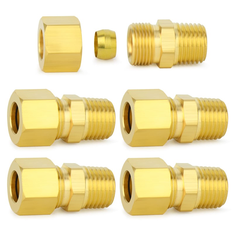 ChillWaves Brass Compression Tube Fitting, 5/8" OD x 1/2" NPT Male Compression Union Connector(5-PACK)