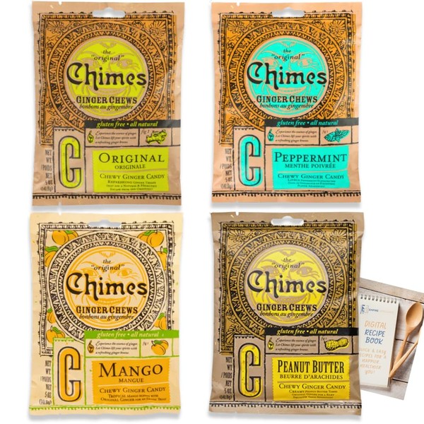 - 🍬Perfect for Sharing - Get all the flavors in our 4 pack bundle! Includes 5 oz packages of (1) Chimes Ginger Chews Original, (1) Chimes Ginger Chews Mango, (1) Chimes Ginger Chews Peppermint, (1) Chimes Ginger Chews Peanut Butter and (1) Empire Mercante Digital Recipe Book.