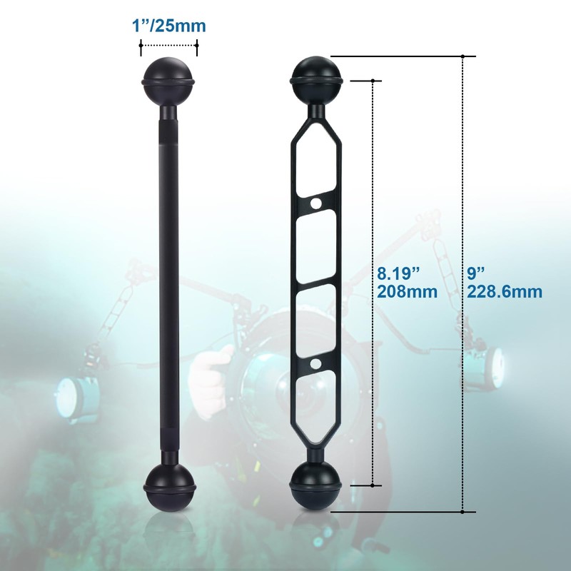 • [Hollow Design, Lightweight and Efficient]: The unique hollow structural design makes this 9-inch (approximately 22.8 cm) dual ball arm stand even lighter when used underwater, effectively reducing drag and enhancing shooting fluidity. It retains sufficient strength and stability while offering these benefits.