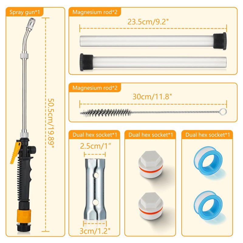 - Wide Application: The RV Water Heater Tank Rinser can quickly remove the scale and anode piece inside the water heater more effectively. The RV Water Heater Anode Rod uses electrolysis to attract all contaminants in the water to itself to prevent rv tank corrosion and mineral buildup, eliminates water heater odor problems, and extends the life of your RV, camper, mobile home, and car water heater.