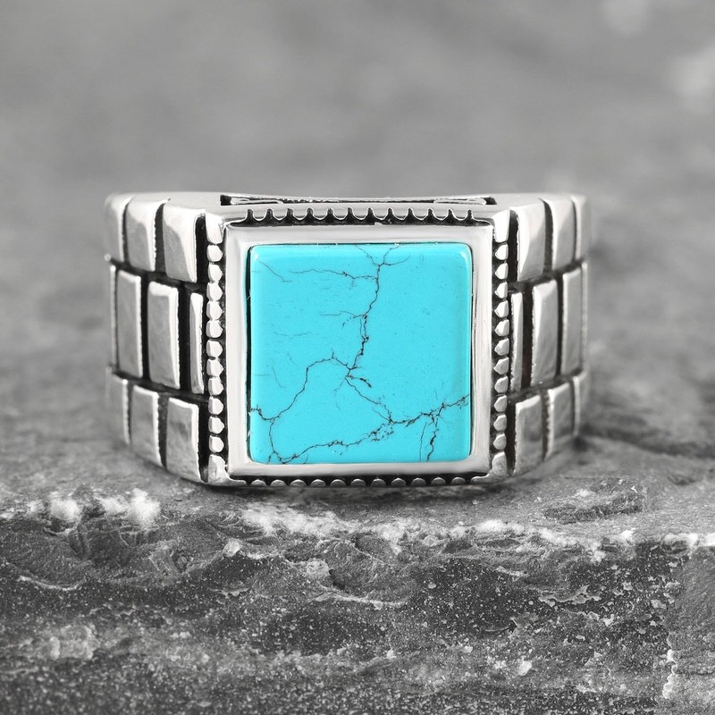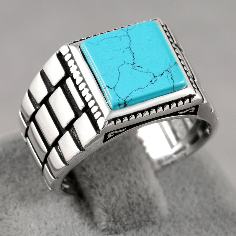 Chimoda Sterling Silver Rings for Men - Style Mens Sterling Silver Ring with Turquoise Stone, Anillos Para Hombre (57TUR9)