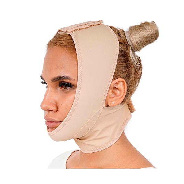 - Thanks to its easy to wear feature; post surgical compression garments for women provide ease after operations such as facelift, chin implant, facial or oral surgery.The adjustable hook and loop fasteners with neck closure at the back and on head enables the best fit in the most convenient form.Chin liposuction compression garments are produced with premium quality soft seams.