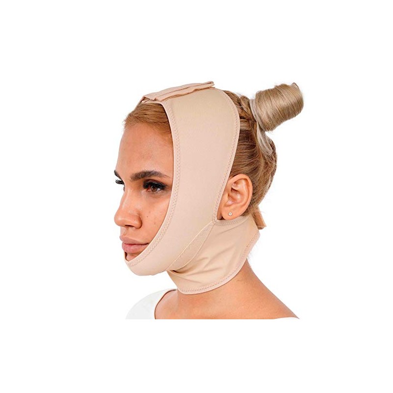 - Wrinkles and bulges can be a matter of concern after surgery; so the chin neck compression garment serves as a chin and neck slimmer especially for post surgery face compression since it is very important to ensure that the skin is healthy, tight and able to breathe after surgery. These bandages for women support the functioning of face muscles as surgeries may cause strain on skin. Post surgery straps also have a micro-massage feature thanks to their special weaving technique.