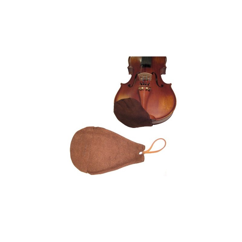 A cushioned, with removable, thin foam lining chin rest cover, slips over the cup of the chinrest and protects the player from the metal clamp, and provides buffer zone for player and chinrest. The cover can be secured under the violin with a rubber band.