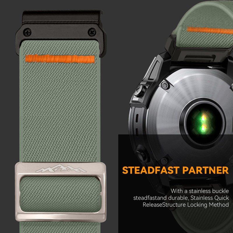 - User-friendly material: compatible with Garmin Fenix 7/7 Pro/Fenix 6/6 Pro/Fenix 5/5 Plus bracelet stretchy nylon webbing is made of high-quality stretch nylon, which is super soft and lightweight, breathable and comfortable. The environmentally friendly nylon and sweat-wicking properties make this bracelet particularly skin-friendly.